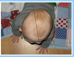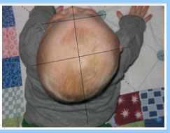 Die Ärzte dort begutachteten und vermaßen den Schädel und stellten eine Deformation der schwersten Kategorie fest. Sie prognostizierten, dass diese Deformation aller Voraussicht nach immer sichtbar bleiben werde, falls man nichts dagegen unternähme. Außerdem klärten sie uns über das Wirkungsprinzip einer Kopforthese (Kopfhelm) auf: An den abgeflachten Stellen, wo Wachstum erfolgen soll, bietet sie Raum; dort, wo der Schädel hervortritt wird er temporär am Wachstum gehindert. Das allgemeine Wachstum des Kindskopfes wird jedoch nicht behindert, das heißt, es verläuft weiterhin entsprechend der begonnenen Wachstumskurve. |
